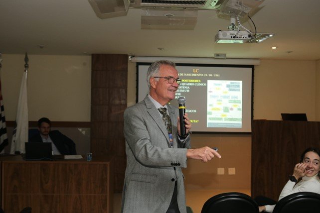 Dr. Osvaldo Nascimento argumenta durante o módulo de perguntas Dr. Osvaldo Nascimento argumenta durante o módulo de perguntas