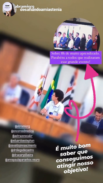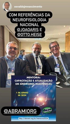 Com grande satisfação, a ABRAMI – Associação Brasileira de Miastenia –, em parceria com a Encore Educação Médica e a APAN – Associação Paulista de Neurologia –, realizou a edição híbrida da Mentoria: Capacitação e Atualização em Síndromes Miastênicas, em 1º de junho de 2024, na sede da APM – Associação Paulista de Medicina, em São Paulo/SP.